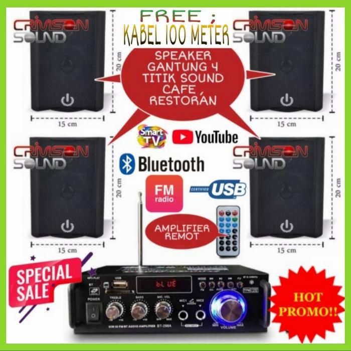 Paket Speaker 4 Inch Crimson Cr 402 Buat Di ruangan Cafe Dan restoran Sound System Karaoke Bluetooth