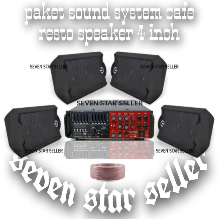 PAKET SOUND SYSTEM AUDIO CAFE / RESTORAN AMPLIFIER+ 4 UNIT SPEAKER Sound System Karaoke Bluetooth