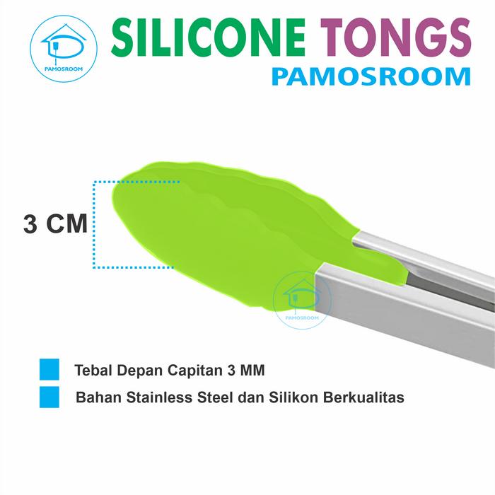Pamosroom Penjepit Capitan Kue Makanan Gorengan Silikon 21cm Food Tong Original BPA Fee Food Grade - Merah