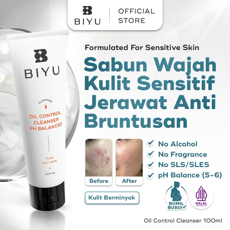 BIYU Oil Control Cleanser - Sabun Cuci Muka Anti Jerawat Bruntusan | Fewash Kulit Sensitif