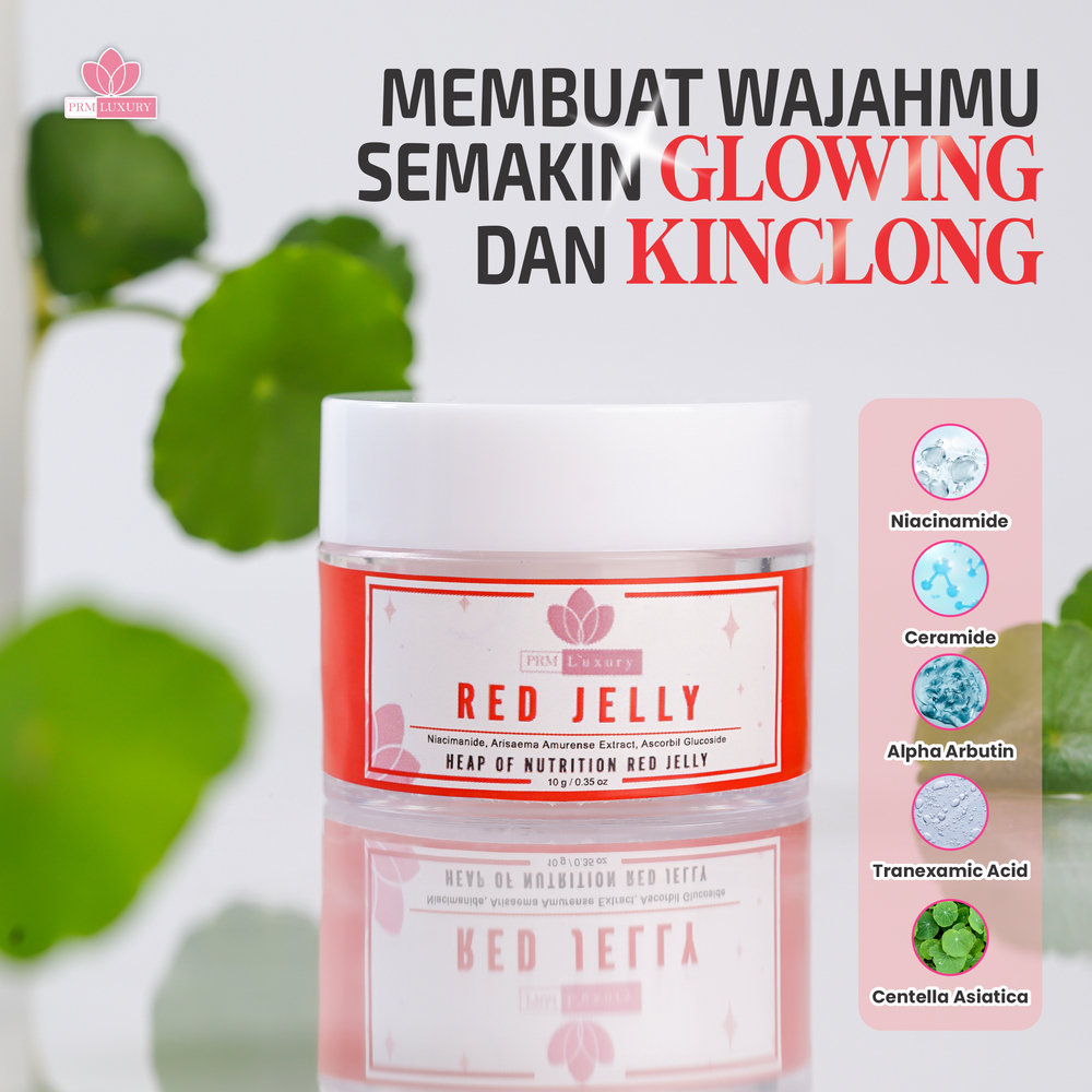 Red Jelly PRM Luxury – Krim Jelly Glowing & Kinclong Instan – Ceramide + Niacinamide + Arbutin BPOM