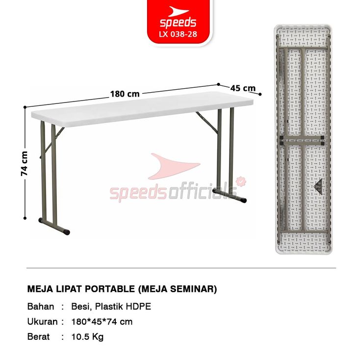 SPEEDS Meja Lipat Plastik 180x45x74cm Folding Table Indoor Outdoor Piknik Serbaguna Besar Meja Bersama 038-28