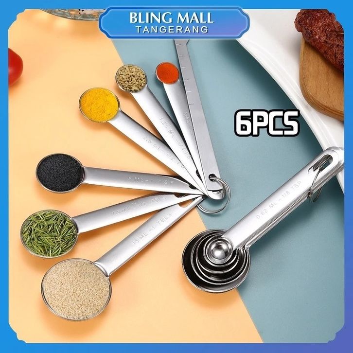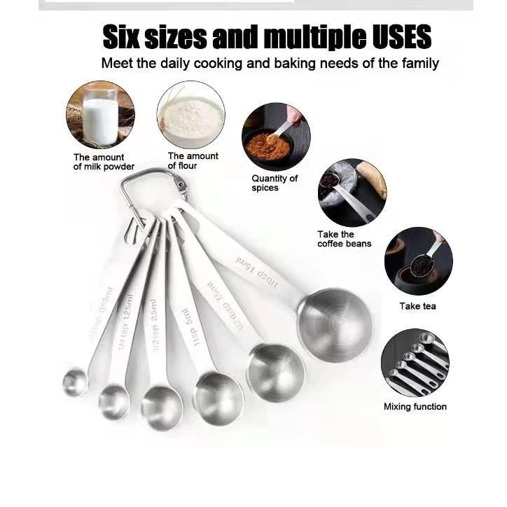 6 In 1 Sendok Takaran Measuring Spoon Stainless Sendok Takar Bulat Stainless Takaran Sendok