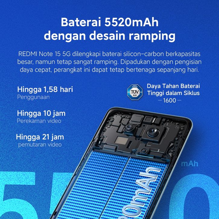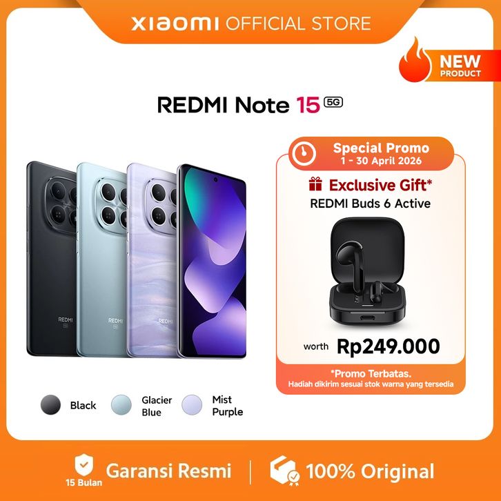 Xiaomi Redmi Note 15 5G RAM 6 128 GB / 8 256 GB / 12 512 GB 5520mAh IP66 108MP AMOLED FHD+ 6,77" NFC HP Official Store