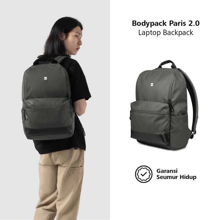 BODYPACK PARIS 2.0 LAPTOP BACKPACK 14 INCH ABU ORIGINAL BODYPACK OFFICIAL STORE TAS RANSEL KERJA KULIAH SEKOLAH CLASSIC