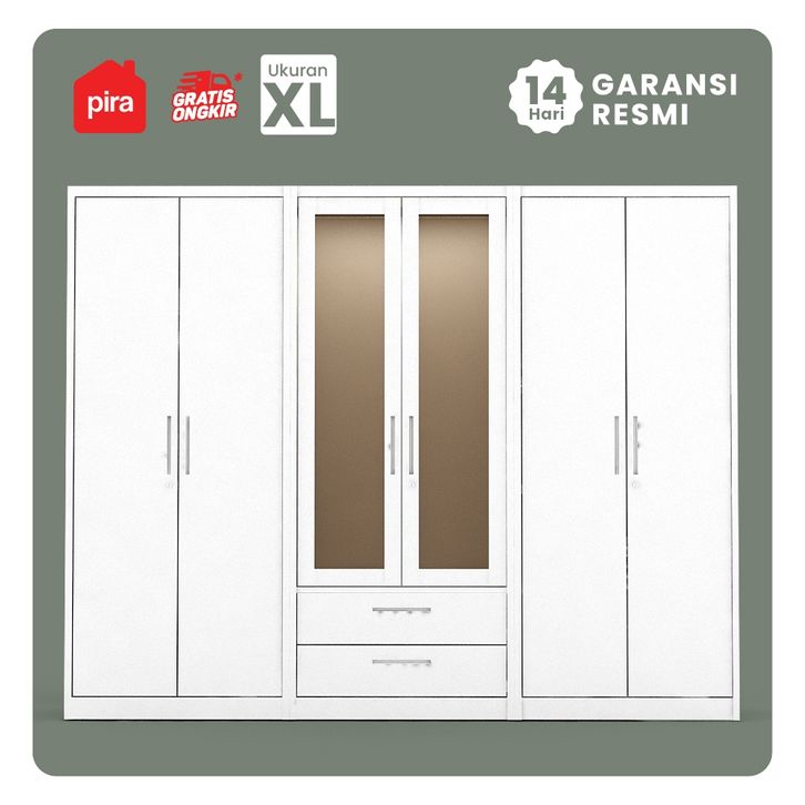 PIRA METROPOLIS - STEEL 6P FGD MWD Lemari Pakaian Besi 6 Pintu dengan Laci dan LED