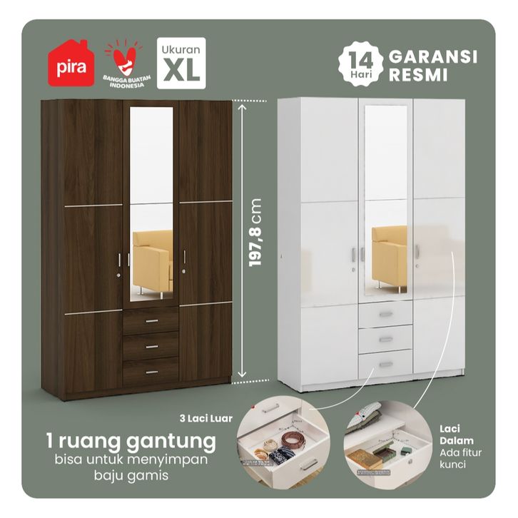 Pira Bavarian - Warking WD3DR N Lemari Pakaian 3 Pintu