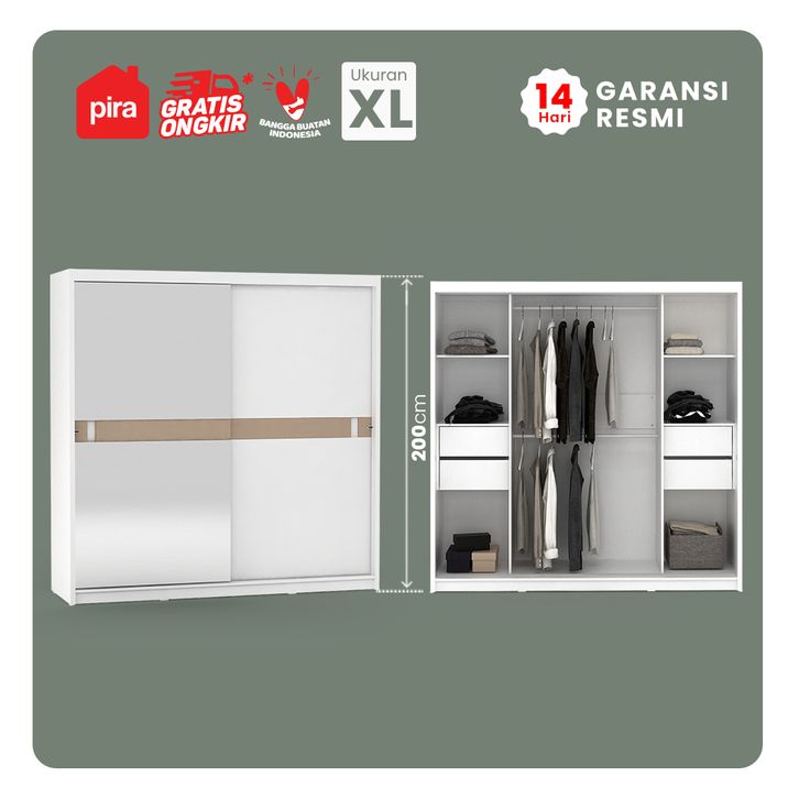 Pira - Kast ABE WDSL200 MR Lemari Pakaian Pintu Geser / Sliding Dengan Cermin