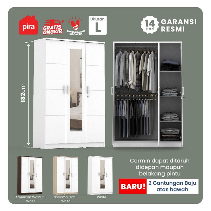 Pira Metropolis - Alba BAZ 3MN LT Lemari Pakaian 3 Pintu
