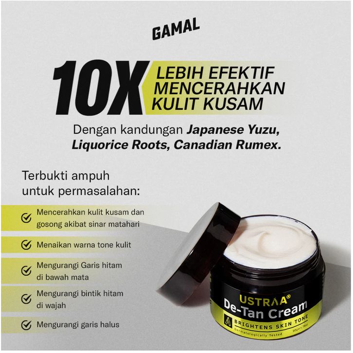 Ustraa De-Tan Face Cream 50gr - Mencerahkan Wajah dan Mengembalikan Warna Asli Kulit