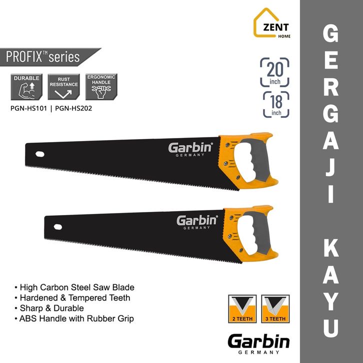 PROMO Gergaji Tangan Garbin Germany Hand Saw PGN-HS Alat Pemotong Kayu Tajam 18 & 20 inch Profix
