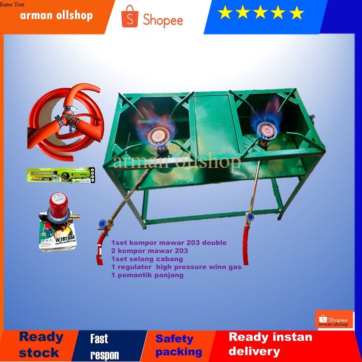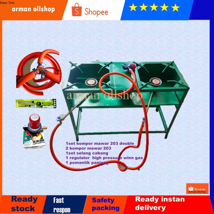 PROMO 1set kompor gas semawar rangka 2 tungku / kompor mawar 2tungku mawar 203