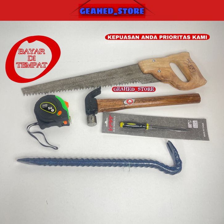 PROMO Paket Gergaji Kayu Palu Meteran dan Linggis - kikir gergaji - cetok besar - Gergaji baja asli