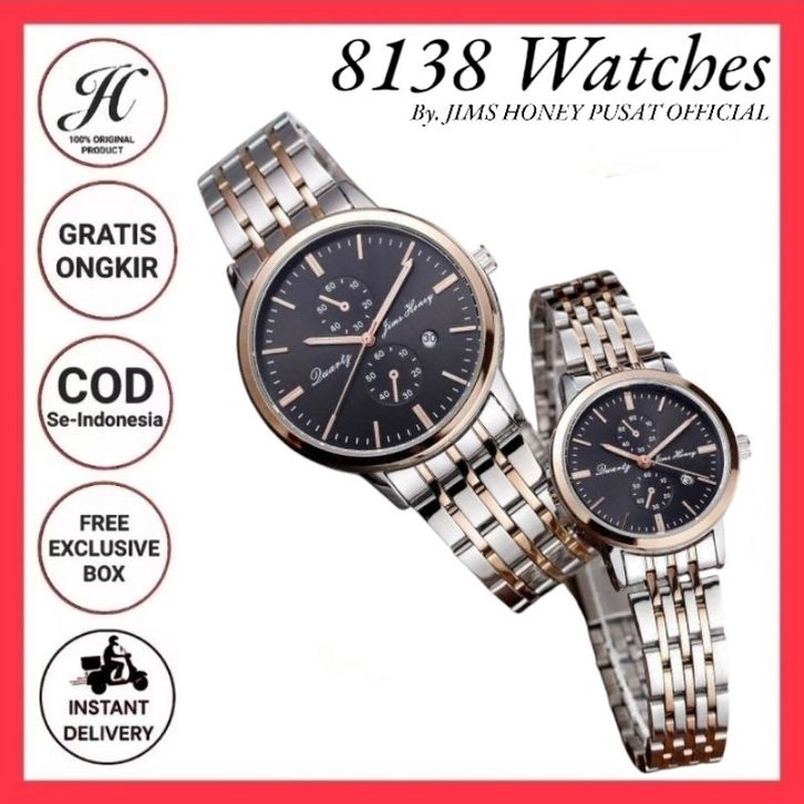 RK - Jam Tangan Couple Jims Honey 8138 Free Box - Jam Analog Pria Wanita Rantai Antiar Original Jimshoney