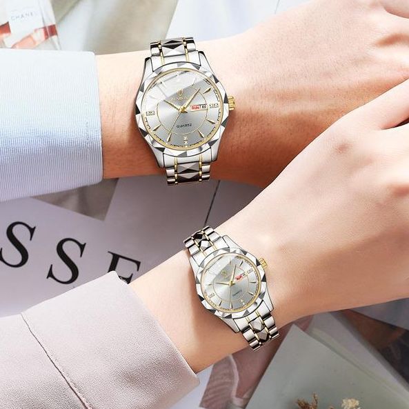 RK - TERMURAH✅ Jam Tangan Couple LUXURY Original Rantai Full Stainless steel Harga untuk 2pcs Tahan Air Casual Pria Dan