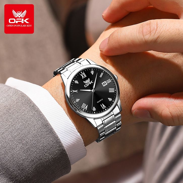 RK - OPK Jam Tangan Pria Anti Air Terbaru Original 100 Rantai Cowok Keren Luxury Analog Tahan Stainless Steel Kekinian