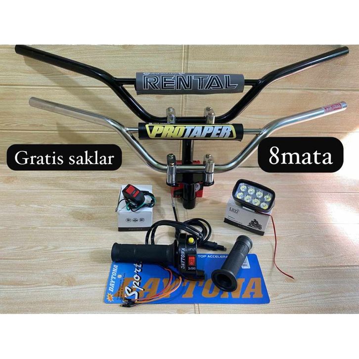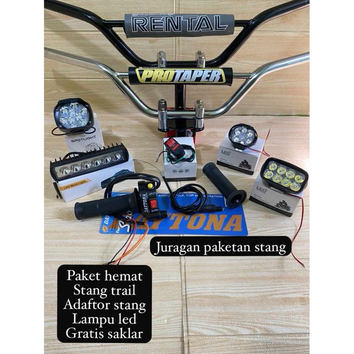 PROMO paket hemat stang trail+adaftor stang+gas spontan daytona 2tombol+lampu led=Gratis saklar