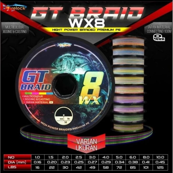Senar Pancing Benang PE Firelock GT Braid WX8 Connecting 100 Meter