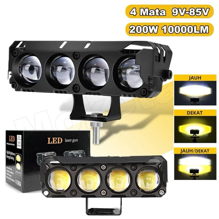 PROMO Lampu Tembak Laser sorot Led SQL 4 Mata DC 9V-85V Full Alumunium Premium kuning-putih 200W