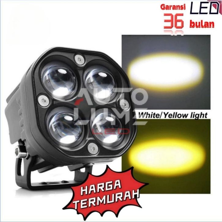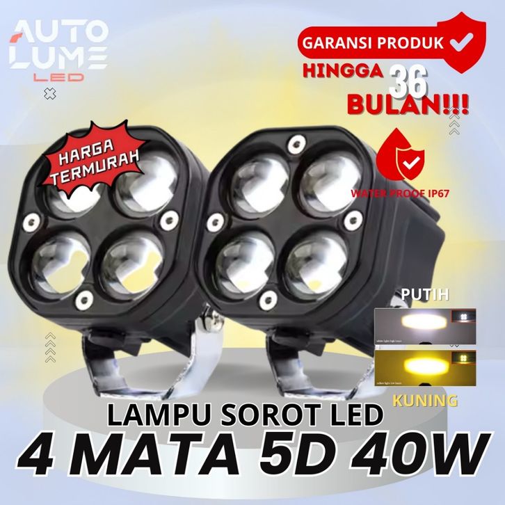 PROMO Autolume Lampu Tembak Sorot 4 Mata 40W 5D Putih Kuning SUPER TERANG - Waterproof IP68, 9-36V -