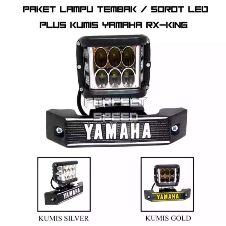 PROMO Lampu Tembak Sorot 6 Mata LED Plus Strobo Kedip + Breket Kumis RX KING Logo Yamaha
