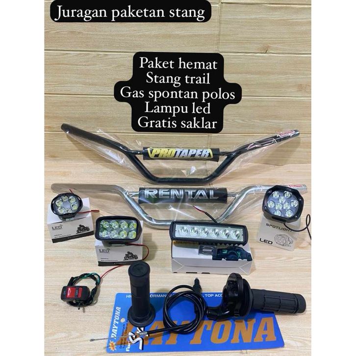 PROMO Paketan stang trail+gas spontan polos+lampu led=Gratis saklar