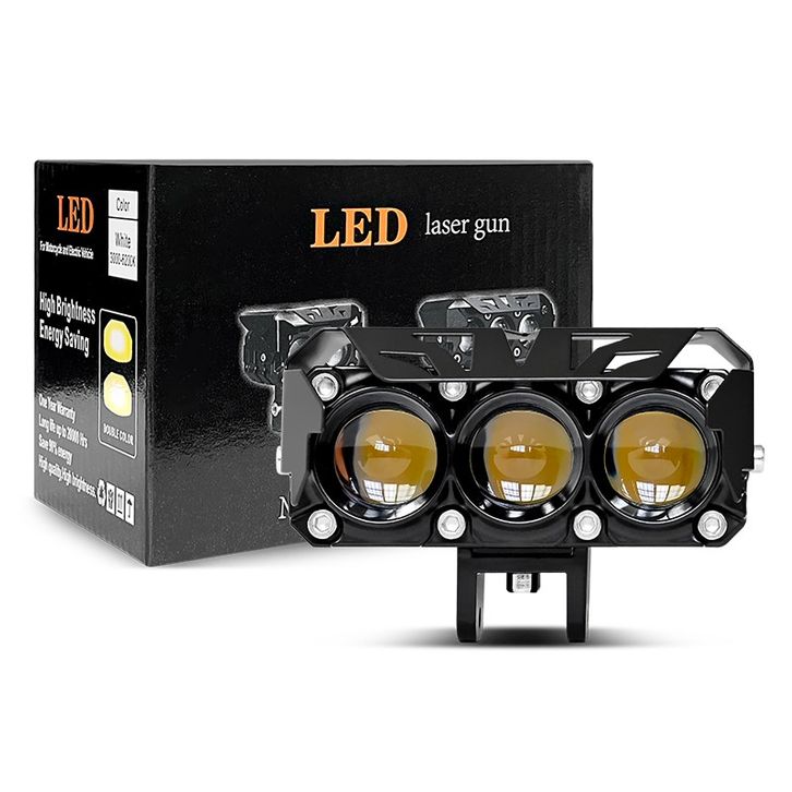 PROMO MOTOQIA Lampu Tembak CR7 Laser Motor Mini 3 Mata 40W LED Super Terang - Foglamp Biled