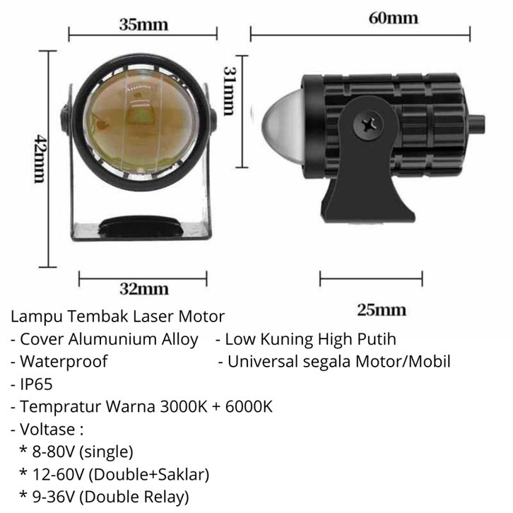 PROMO Lampu Tembak Laser Sorot Motor D2 Waterproof Anti Air Tembus kabut 2 warna Kuning Putih Jauh