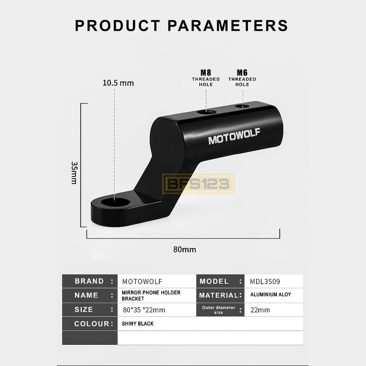 PROMO MOTOWOLF Bracket Spion Original Lampu Senter Holder HP Aluminium Aloy