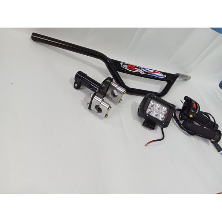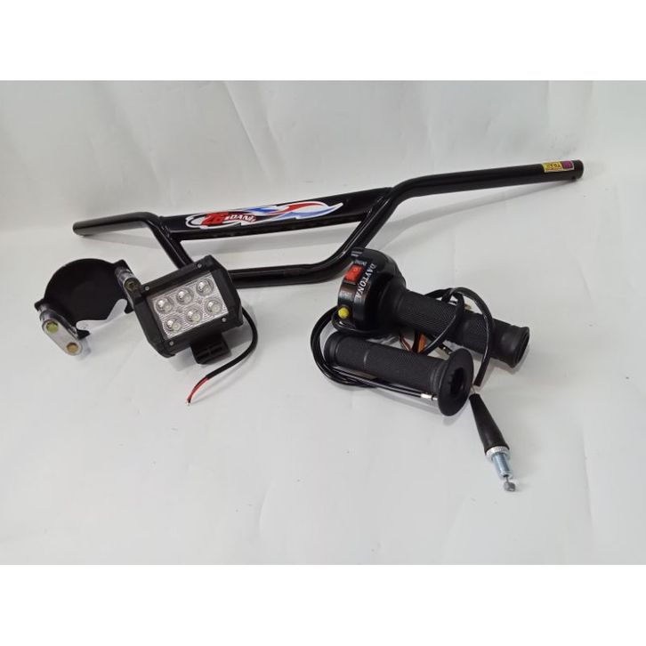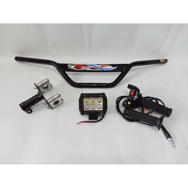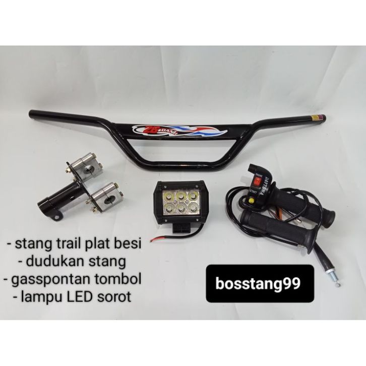 PROMO paketan stang trail plat+ dudukan stang+ gasspontan tombol+ Lampu LED sorot motor bebek dan