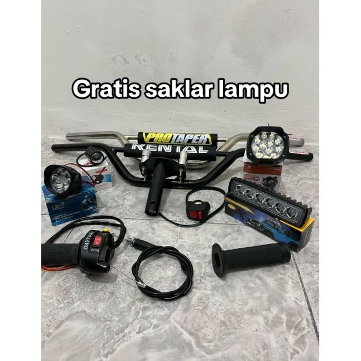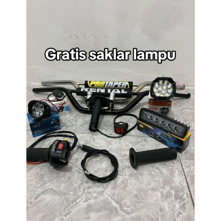 PROMO Paketan Stang stir trail adaptor gas spontan 2 tombol lampu tembak free saklar on off