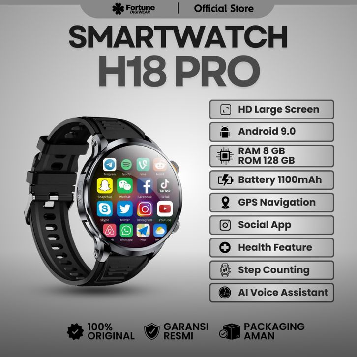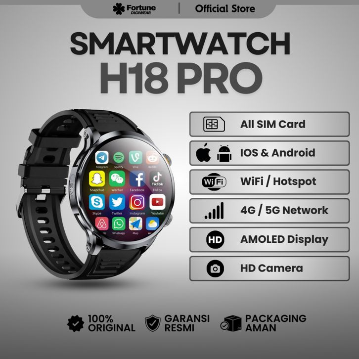 RK - FORTUNE DIGIWEAR - H18 PRO Smart Watch Android Jam Tangan SIM Card 4G/5G | Camera | AMOLED | Wifi | GPS | NFC | Bl
