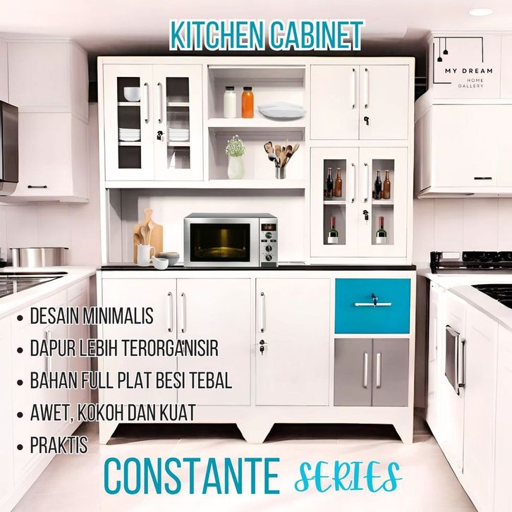 Terlaris Constante Lemari Rak Dapur Dengan Lampu LED Besi Minimalis | Kitchen Cabinet | Kitchen Set | Lemari Makan | Le