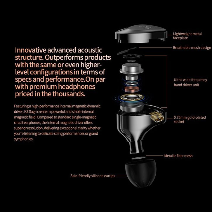 KZ SAGA Single DD In Ear Earphone Metal with MIC