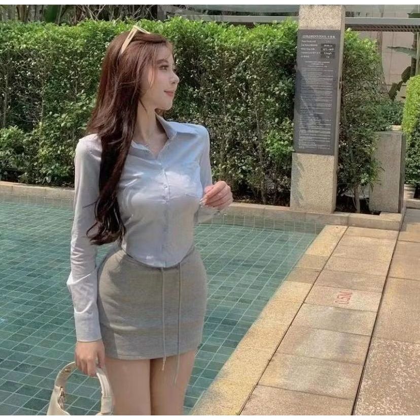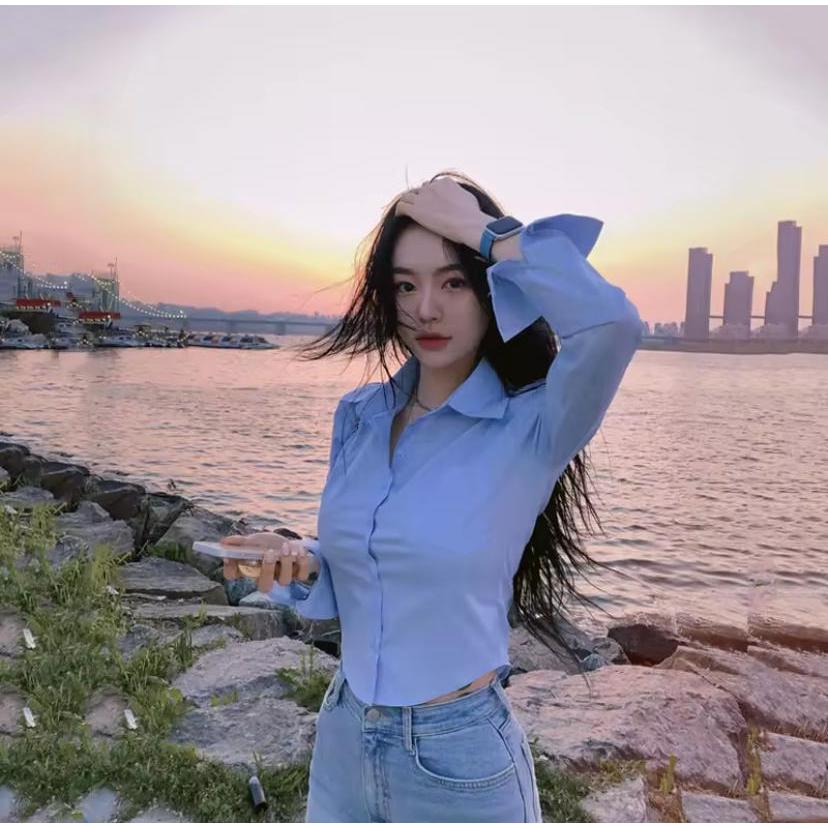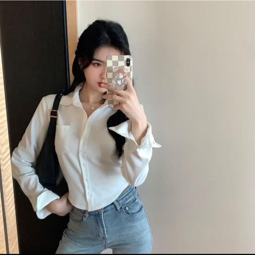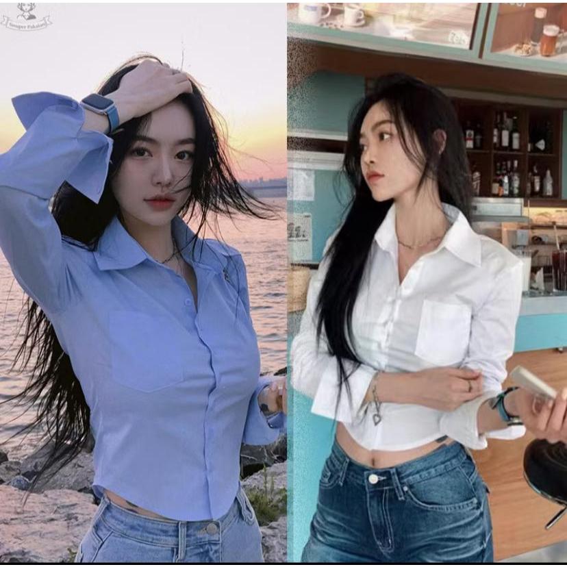 Virza Top Crop Rayon Twill/Atasan Korean Style Trendy/Kemeja Kerja Wanita Kekinian