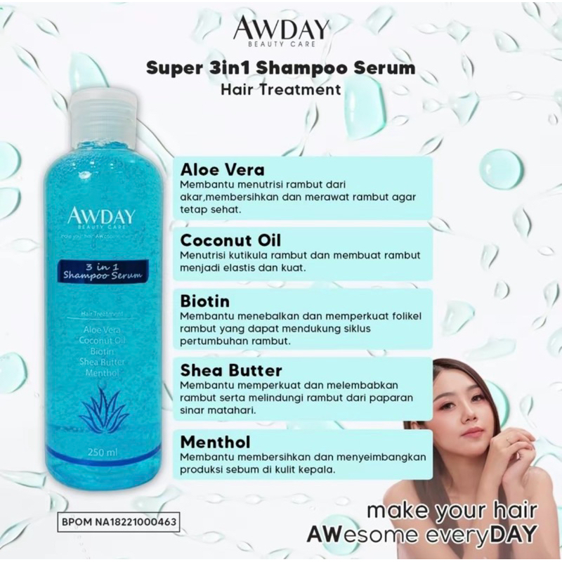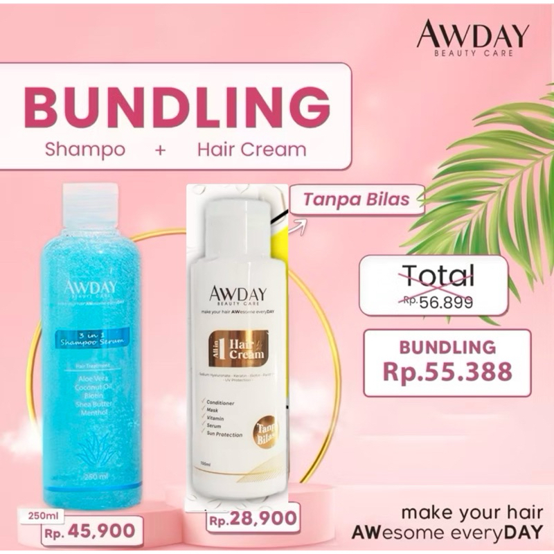 PAKET MURAH Awday Shampoo 3 in 1 dan Hair Cream Cepat Menumbuhkan Rambut BPOM HALAL