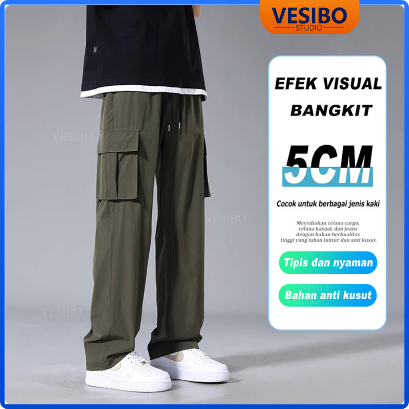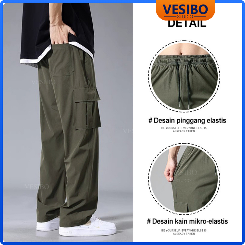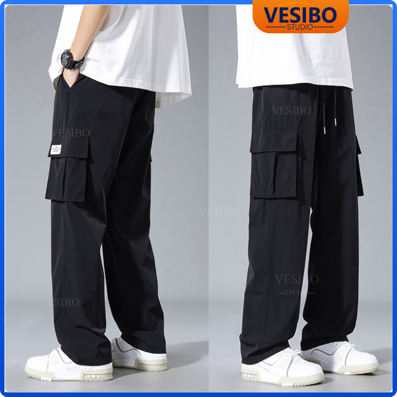 Celana Cargo Pria Longgar Pants Fashion Korean Style Designer New Styles Cargo Pants Hitam