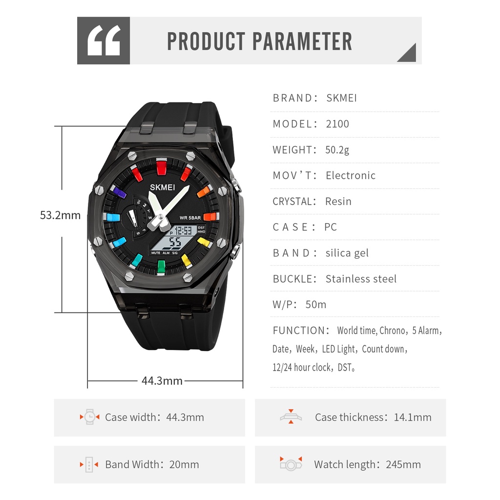 SKMEI 2100 Jam Tangan Pria Wanita Digital Analog Sport Watch Shockproof Anti Air 5 Bar WATCHKITE WKOS