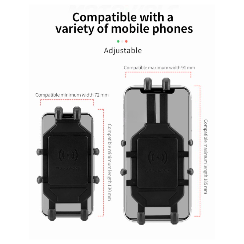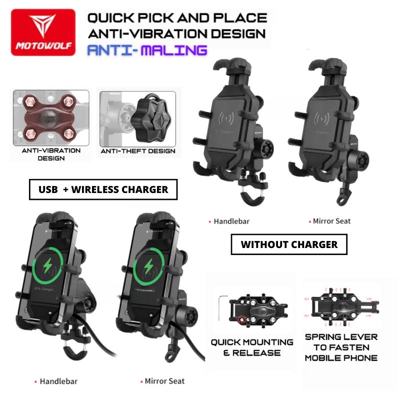 Motowolf Holder Handphone HP Motor USB Wireless Charger Stabilizer 360 Anti Theft