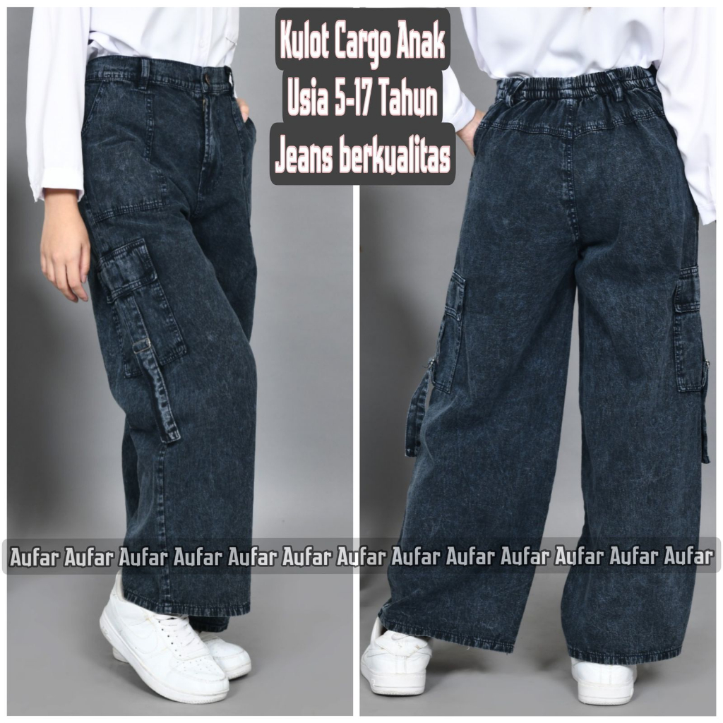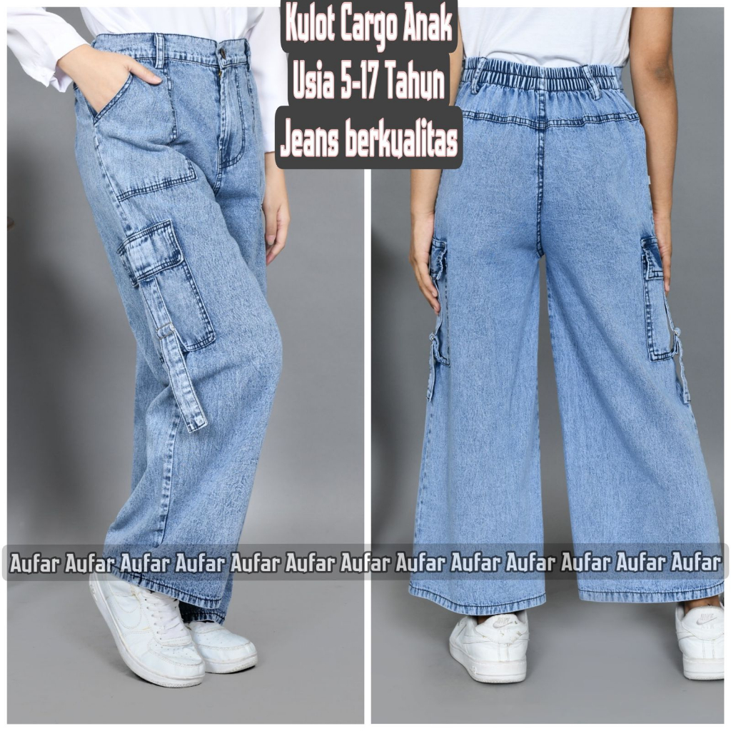 CELANA KULOT JEANS CARGO ANAK PEREMPUAN SAKU SAMPING USIA 1-17 TAHUN