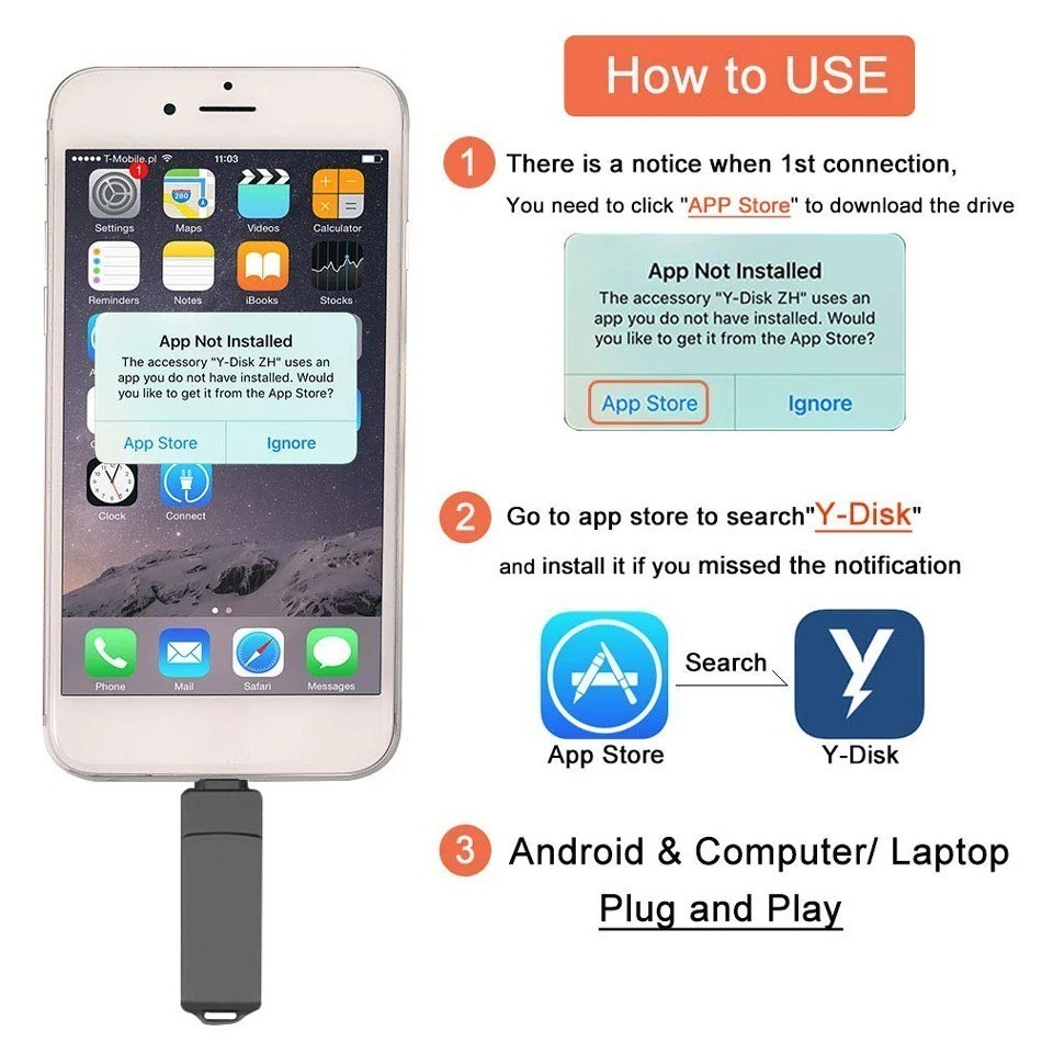 1TB OTG IOS Flash Drive for iphone 6/14 pro Flashdisk USB3.0 3 IN 1 Data Storage Metal Memory Stick Lightning hp/Micro U