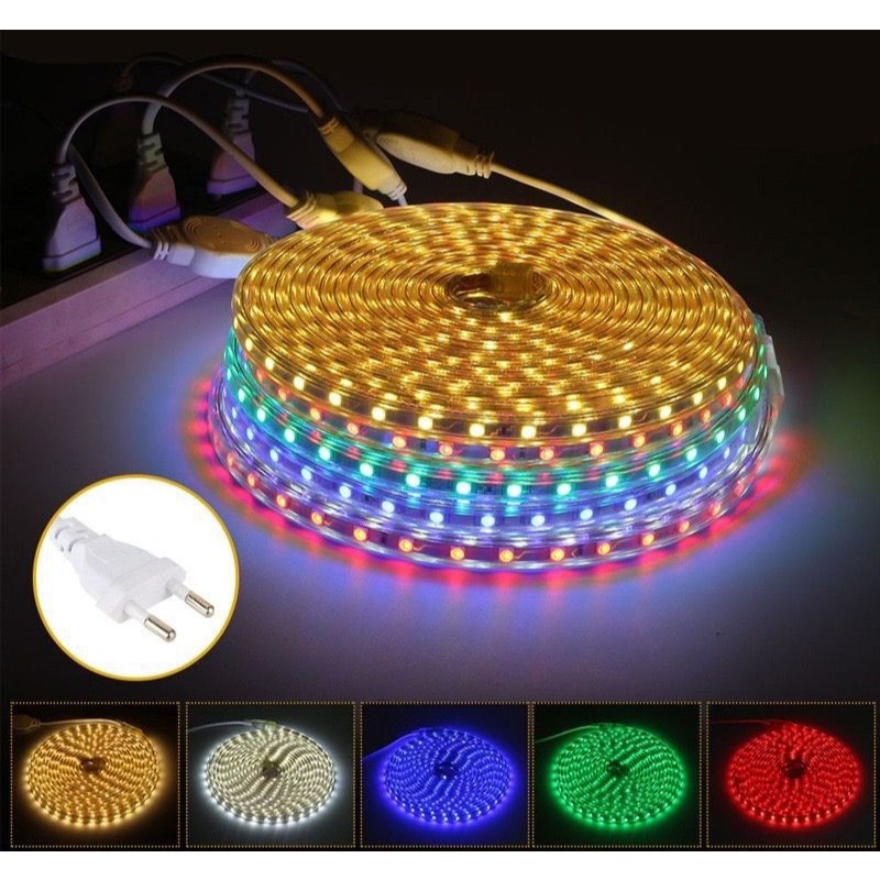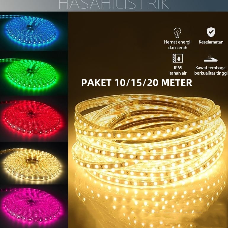 PAKET 10 15 20 METER GRATIS 1 SOKET (SOKET SUDAH TERPASANG) / LAMPU LED STRIP 5050 AC220V WATERPROOF