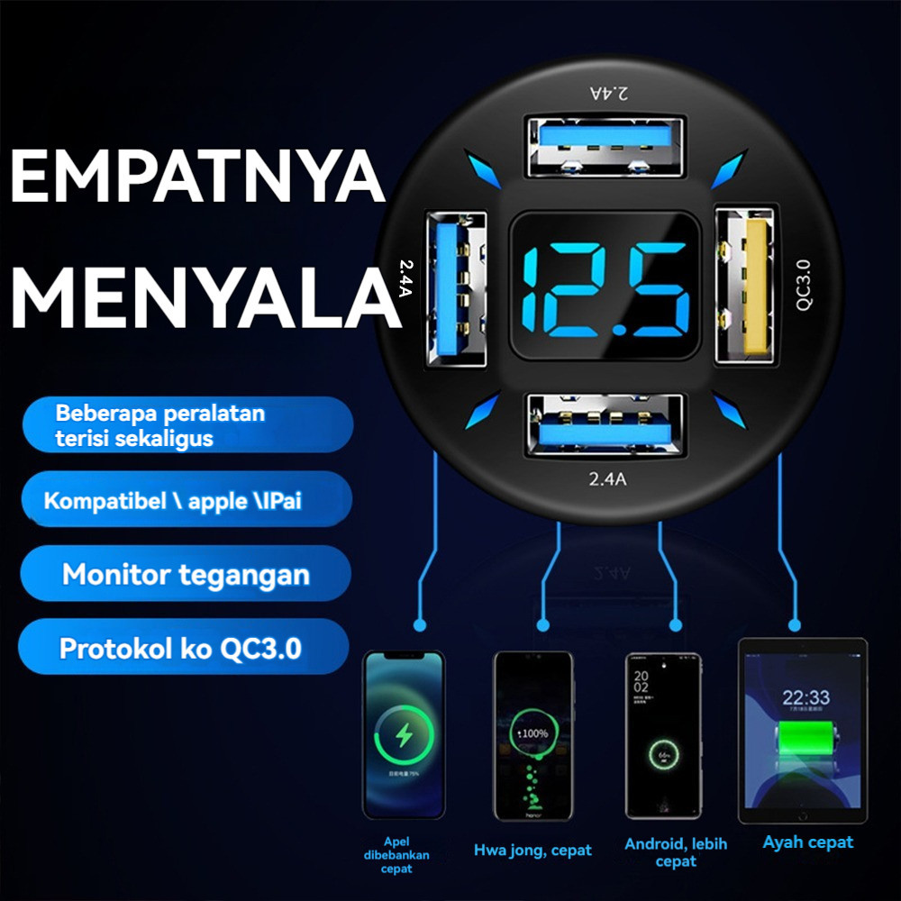 66W 4 Ports USB Car Charger Fast Charging Quick Charger 3.0 Car Phone Charger Adapter