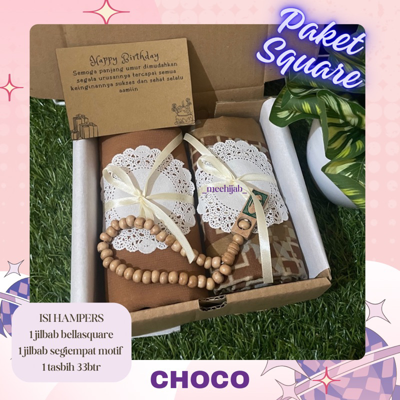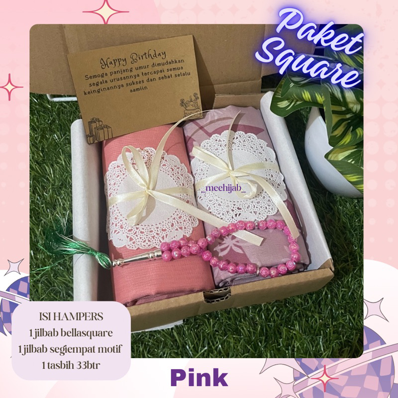 HAMPERS SQUARE HIJAB JILBAB SEGIEMPAT KADO HADIAH ULTAH WEDDING HARI IBU GURU