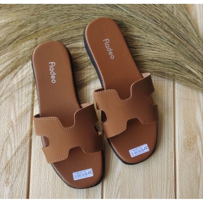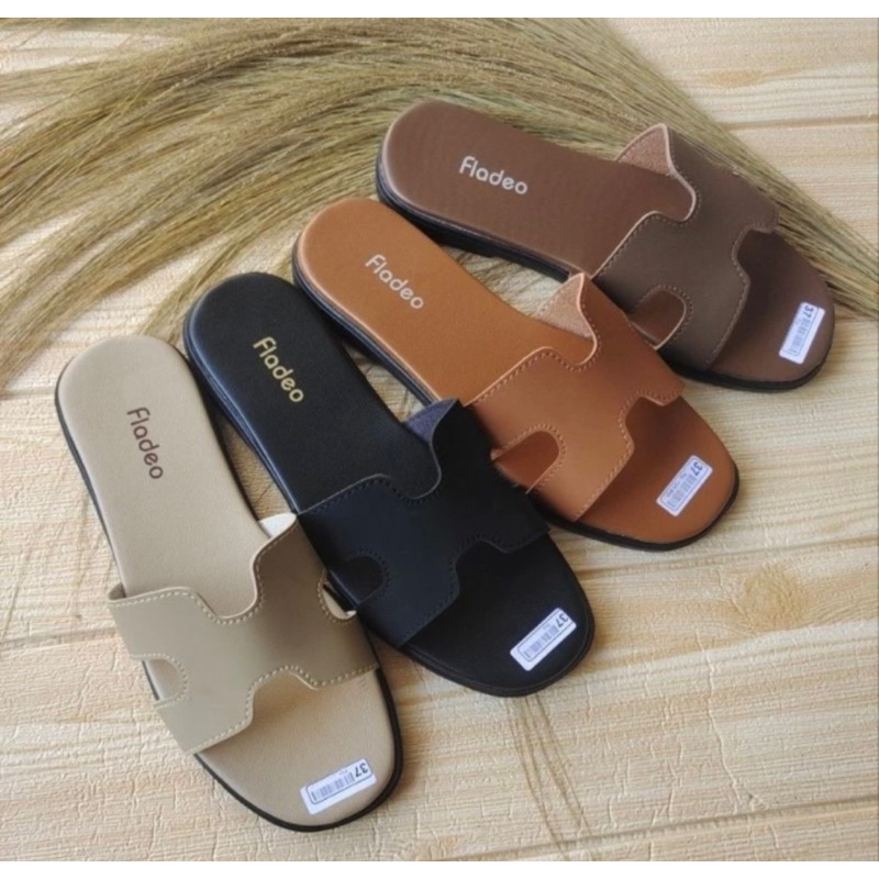 Fladeo Sandal Selop Flat Teplek Wanita Terbaru|Sendal Rumah Casual|Selop Slip On Cewek Motif Anyam Trendy Nyaman Modis D