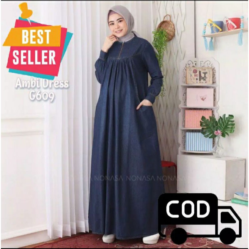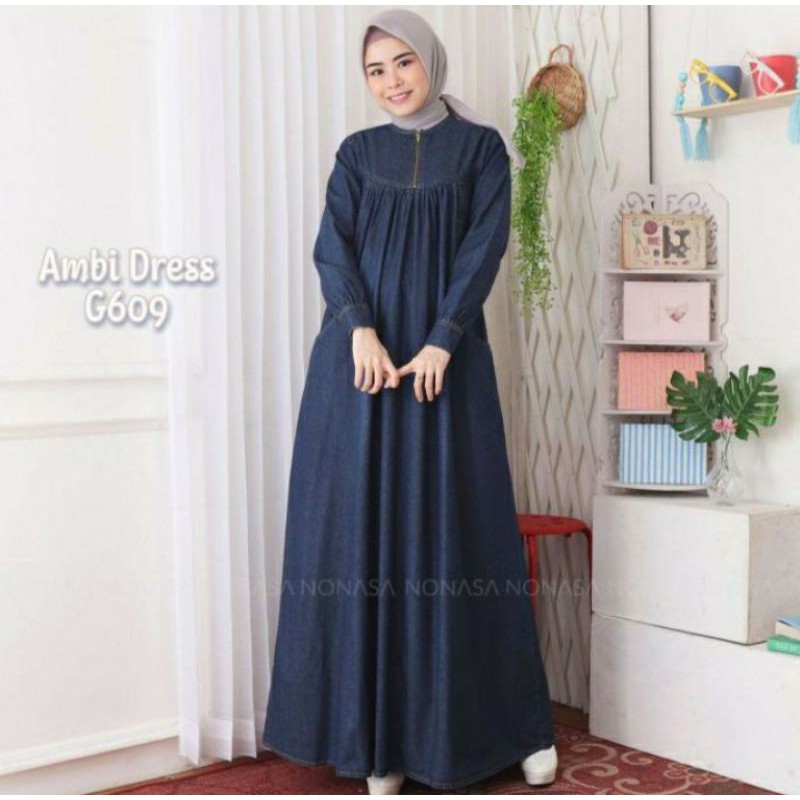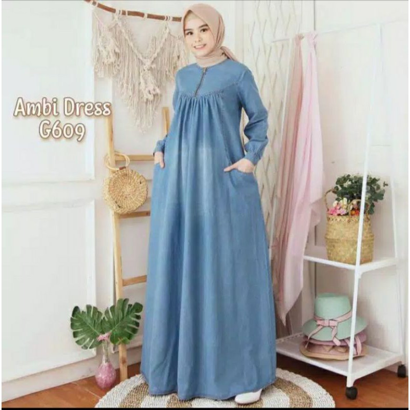 Gamis Jeans Baby Doll Wanita Ambi Dress G609