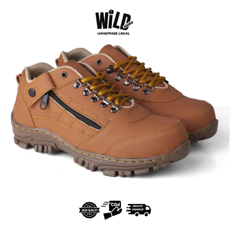 Sepatu Safety Pria Ujung Besi - Sepatu Boots Pria Septi Outdoor Tracking Hiking Adventure Proyek - Wildshoes Official