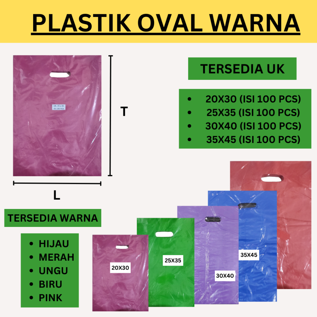 HD Oval Polos Uk.30x40 (100pcs) / 25x35 (100pcs) / 20x30 (100pcs), Kantong Belanja/Olshop, Plastik baju, Plastik Plong O
