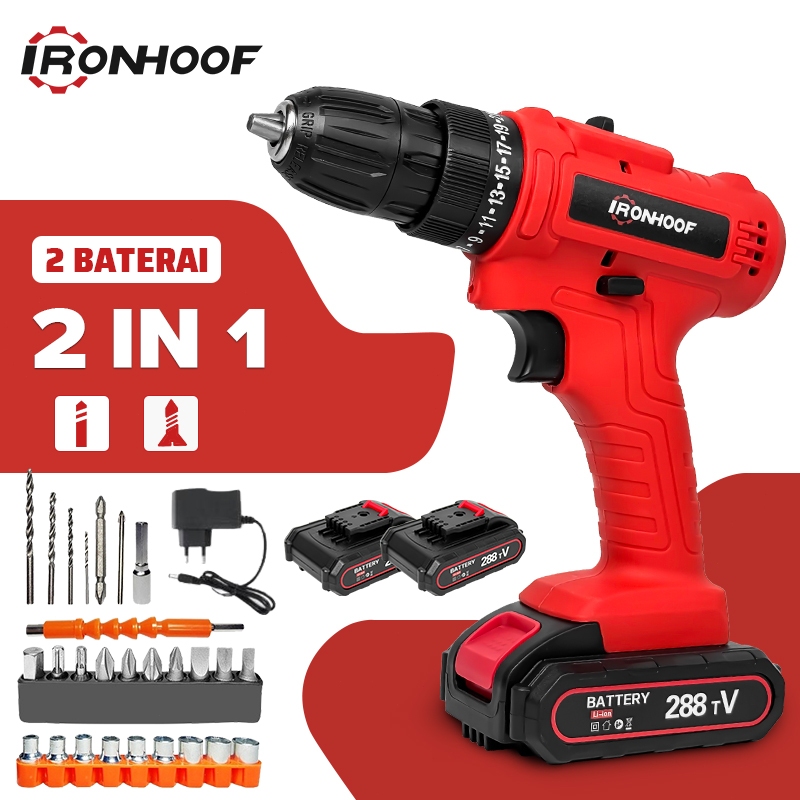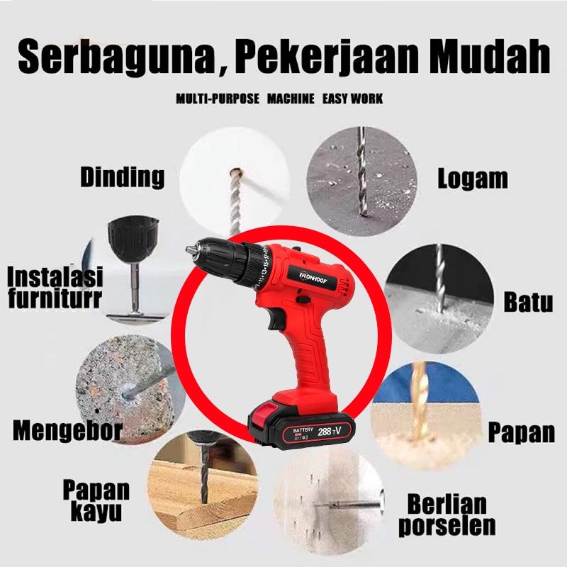 Aurora Bor Listrik 288V Bor Impact baterai Cordless Untuk Besi Tembok Beton Kayu Mesin Bor baterai