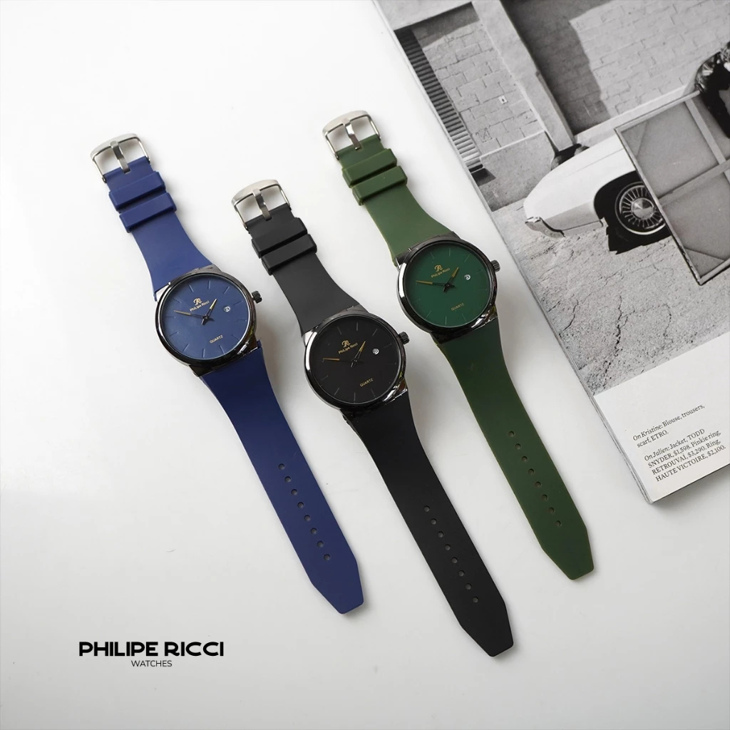 PhiLipe Ricci Jam Tangan Pria Karet Hitam Simple Terbaru Ori Tipis Keren 7553 Men Watches Free Box